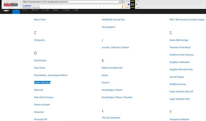 Пользователи ResetEra заметили, что Death Stranding больше нет в списке эксклюзивов на официальном сайте PlayStation. Релиз на PC косвенно подтвержден? Игра точно присутствовала в списке, по крайней мере, в версии страницы с эксклюзивами от 31 мая.