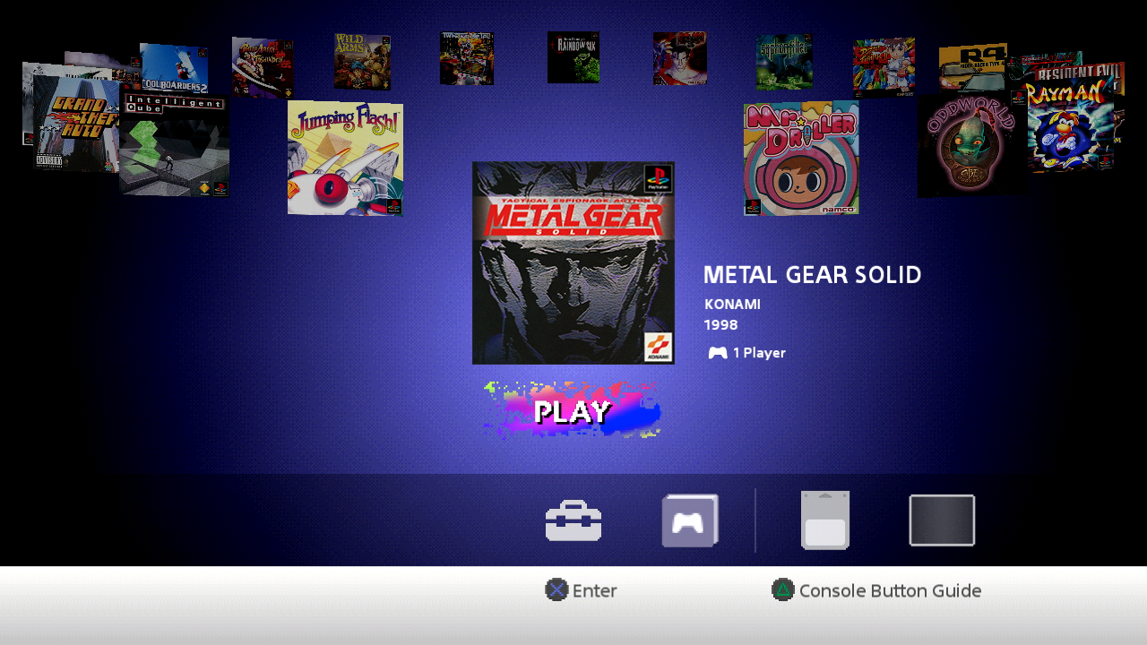 Также у вас будет 15 виртуальных слотов карты памяти, на которые вы сможете сохранять продвижение в играх, прямо как на оригинальной PlayStation. В дополнение, если нажать кнопку сброса на консоли, то вас переведёт в главное меню системы с созданием точки восстановления там, где вы остановились. Так, вы сможете вернуться к игре прямо с того места, где закончили.
